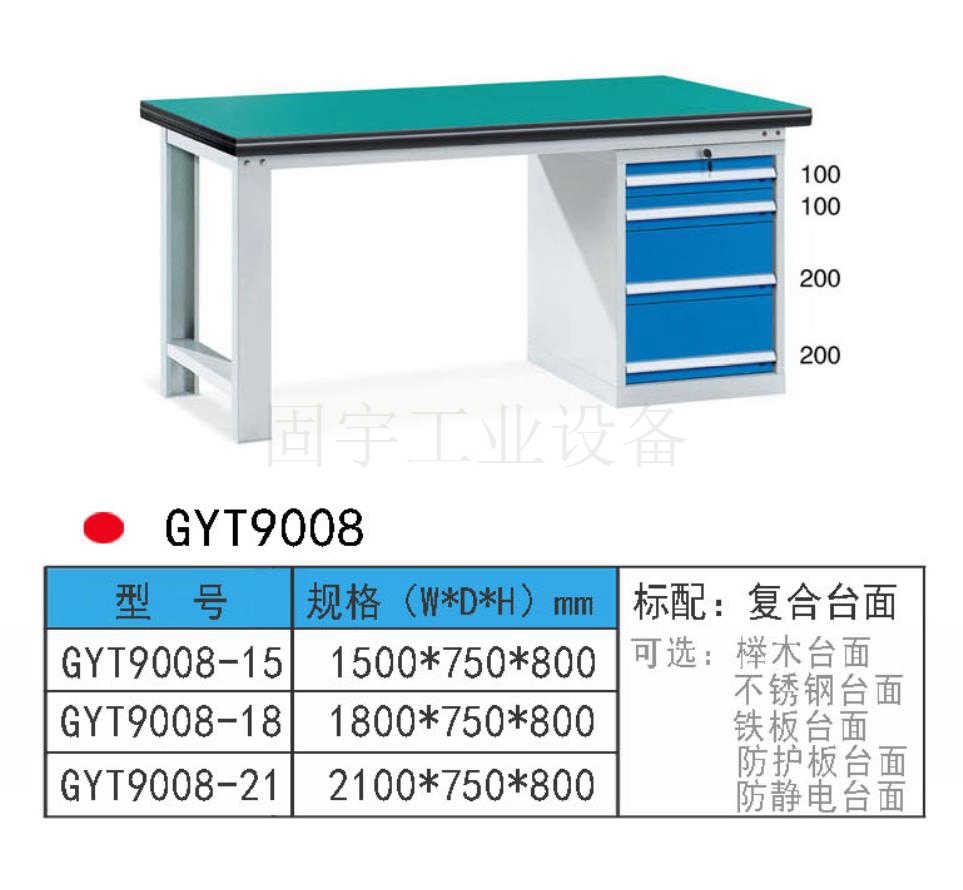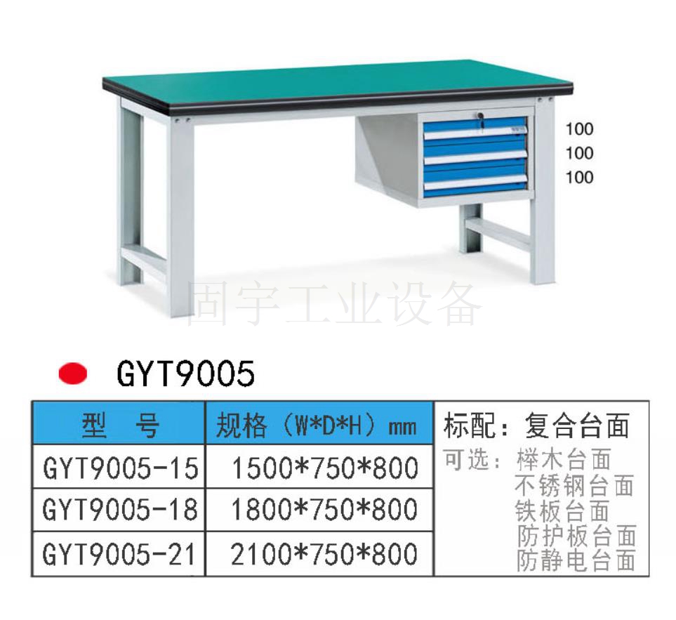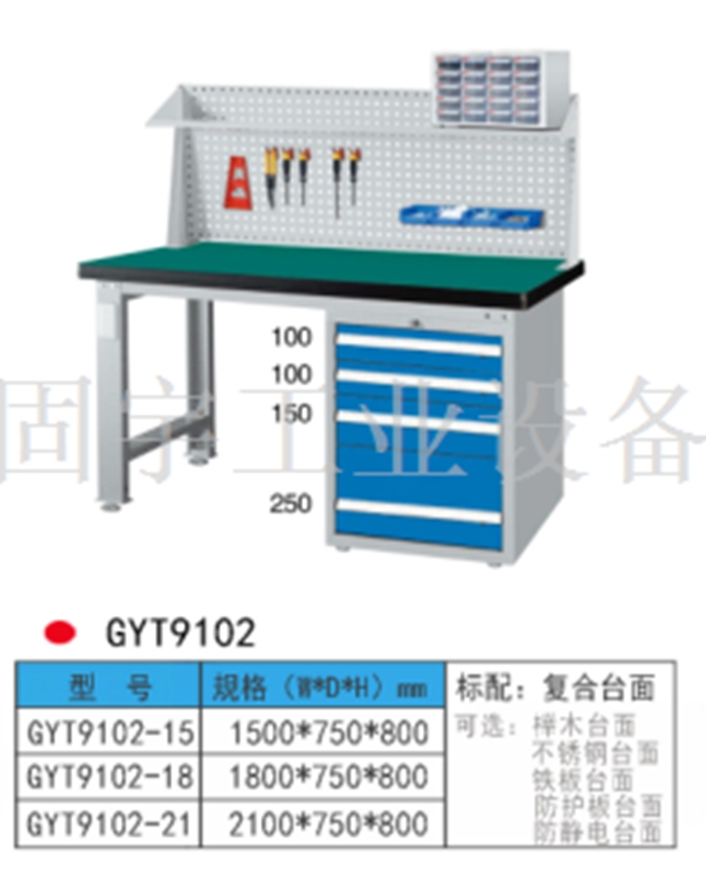 工作臺采用優質冷扎板精工制作而成,堅固的工作桌框架,牢固平穩,可使工作桌承重1000kg;多種工作桌面選擇,可配合不同使用的要求;工具吊柜(箱),側柜(箱)燈架,調節腳杯,,外形美觀;層板,抽屜質量上乘,承重大,抽屜內可根據需要任意分隔;節約空間,適用性強。 范圍 工作臺適合于模具、鉗工、檢測、維修、組裝等各種不同應用場合,具有良好的耐腐蝕性,耐臟性,抗沖擊性和承重能力強。桌面經特殊處理,具有防腐、抗沖擊力強等特點,多種桌面的選擇,可配合不同的使用要求;所配置的抽屜、柜門方便使用者存儲工具;桌角上預留電源孔,方便安裝電源插座。工作臺(桌)分為輕型(可承重300公斤),中型和重型工作臺(桌)可承重1000公斤及特制的工作臺??筛鶕枰`活地配置各種吊柜、單柜、雙柜等,可加裝掛板,電器板,燈頂板、調節腳杯,輪子,擱板等桌上部件,具有多種選擇,能夠滿足各種工位的需求。 工作臺材質采用優質冷軋鋼板,表面采用靜電噴涂處理而制成,堅固的工作桌框架,牢固平穩,可使工作桌臺面均勻承重達到1000kg。桌面有多種材質組成,適用于各行業辦公場所。可配合工具柜,吊柜,掛板,單開門柜使用。抽屜、承辦承重大,性能好,抽屜里可根據需求配置分隔條 工作臺分類:根據臺面的不同分為:櫸木工作臺、鋼板合成工作臺、防靜電工作臺、高分子工作臺;根據承重的不同分為:輕型工作臺、中型工作臺、承重型工作臺;根據功能的不同分為:多功能工作臺、帶吊柜工作臺等等。 臺面優勢 復合臺面特性臺面平整度高,撓曲度為0.8mm。表面2mm厚度為高分子材料,使臺面耐酸堿、耐磨、耐油。臺面采用高壓纖維板,使臺面更具有抗沖擊性。特別的圓弧桌角,不易受撞擊損壞。高強度塑膠包邊堅固、實用、不易損壞、不易脫落。櫸木桌面特性桌板使用櫸木與防水膠經加壓制造而成。表面光滑平整,美觀不易變型,耐油、耐熱、耐酸、耐堿,適合一般工廠作業與精密模具維修,儀器置放與檢測等用途。不銹鋼包面特性桌板使用高壓合成板,表面包1-2mm砂面不銹鋼板,以達美觀耐用。耐高溫、耐磨損、耐油、使用壽命長,為多功能桌板,適合一般工廠、食品業、研究室、電子廠無塵室使用。輕型工作臺可承重300kg-500KG防火板臺面特性輕巧、美觀、耐磨、防火。層壓板臺面特性工作桌面平整,變型小,強度高,抗沖擊性好。 標準顏色 產品顏色 標準的顏色可分為6種:淺藍色(RAL5015), 電腦灰(RAL7035), 機床綠(RAL6011),深藍色(RAL5017)。