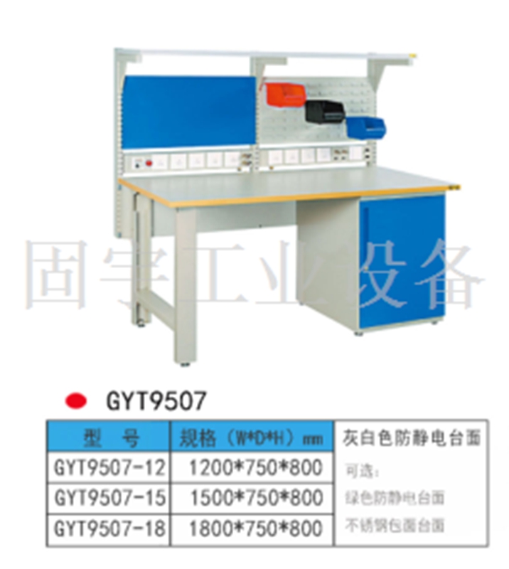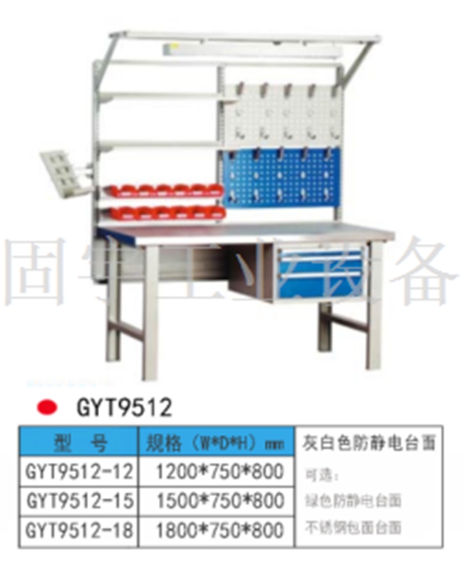 結構 1、防靜電工作臺臺面一般由防靜電三聚氰胺高壓裝飾層壓板(俗稱防靜電防火板)為表面材料與木質材料復合制成。木質材料一般為刨花板,通過嵌入導電體如鋼柱,再通過接地線接地,這樣桌面靜電荷通過接電線順利地泄放到大地。2、也有一些工作臺是不銹鋼的,桌面需要鋪一塊防靜電桌墊,桌墊通過接點線連入大地,達到瀉放靜電的效果。3、防靜電工作臺就是能滿足用戶的普通工作臺功能的基礎上,增加了防靜電功能,也就是如何將靜電瀉放掉!潔凈工作臺 潔凈工作臺是一種層流局部空氣凈化設備,采用可調風量風機系統,在調節風機工作臺后,可使潔凈工作區的風速始終保持在理想范圍內。(可根據客戶要求配備壓力表、可隨時掌握高效過濾器阻力變化情況。 工作臺結構特點 可分為輕型,中型,重型工作臺。1、采用優質鋼板專用模具用輥扎工藝成型,并通過先進的自動化靜電噴涂工藝進行表面處理。 2、根據用戶的承載要求,可選擇不同形狀的桌腳。3、根據用戶要求,工作臺桌面可選擇:高分子復合桌面、防火板桌面、不銹鋼包面、鐵板合成面、櫸木桌面、橡木層壓板左面、防靜電桌面、電木板貼面等 。4、桌上可配照明架、吊架、擱板、方孔掛板、百葉掛板、動力電源插座、電器盒、零件盒掛條等,滿足用戶不同的需求。桌腳上預留安裝孔,方便客戶安裝電源插座。5、桌下可選配各種類型的工具柜,加裝工具柜后,更能合理地利用空間,存放保護工具??芍苯釉诠ぷ髯郎霞友b臺鉗。滿足用戶裝載物品的需求。6、各種類型的工作桌均采用組合式設計、拆裝組合容易且穩固、耐用。